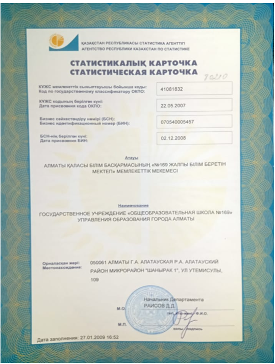 1.БІЛІМ БЕРУ ҰЙЫМЫНЫҢ ЖАЛПЫ ДЕРЕКТЕРІ: