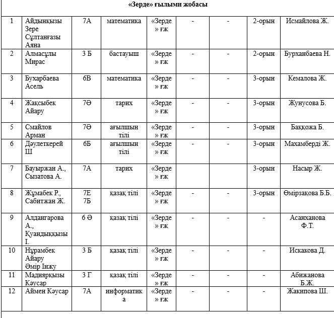 Зерде ғылыми жобасының аудандық кезеңіне қатысты