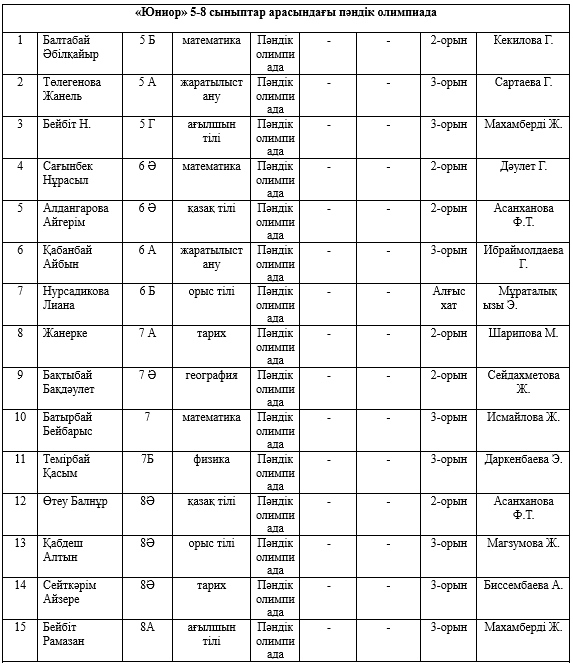 Алтын сақа олимпиадасының мектепішілік кезеңіе қатысып 1- орын иеленді .