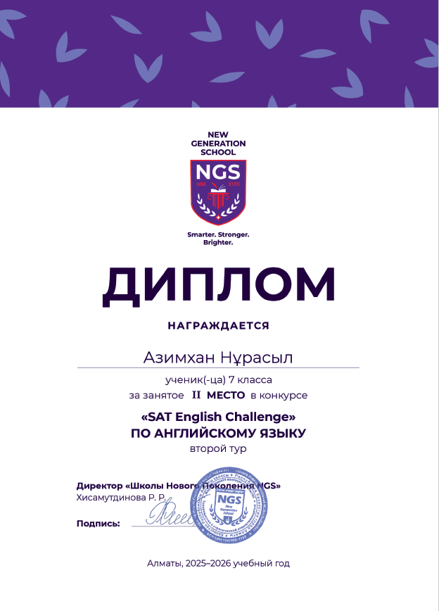 14 январь 2026 0 1 2 3 4 5 «SAT English Challenge» олимпиадасының қалалық кезеңінің марапаттарын жіберді, құтты болсын! Ағылшын тілі мұғалімдеріне көп рақмет!!! «SAT English Challenge» олимпиадасының қалалық кезеңінің марапаттарын жіберді, құтты болсын! Ағылшын тілі мұғалімдеріне көп рақмет!!! Осы беттің QR-коды:QR-код этой страницы: