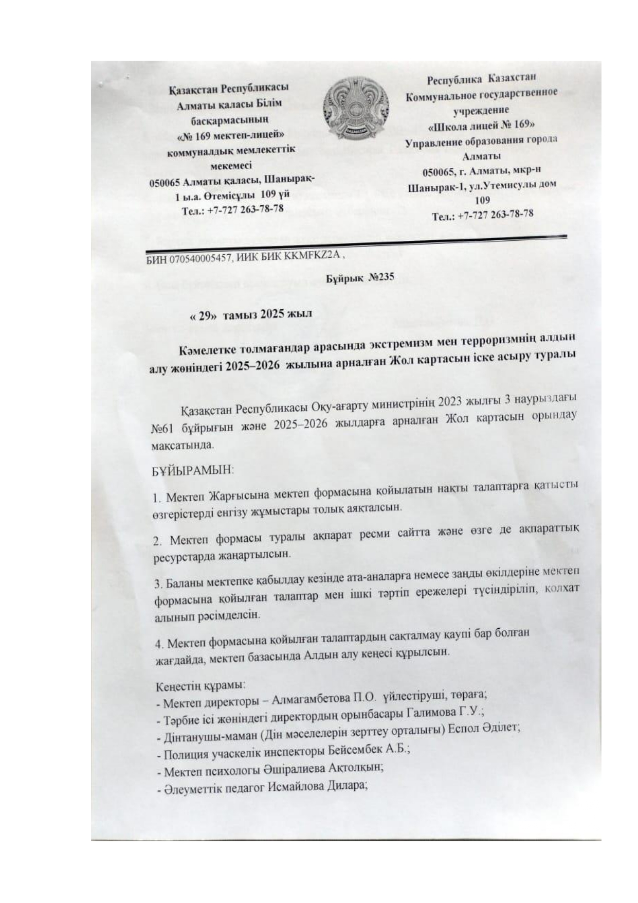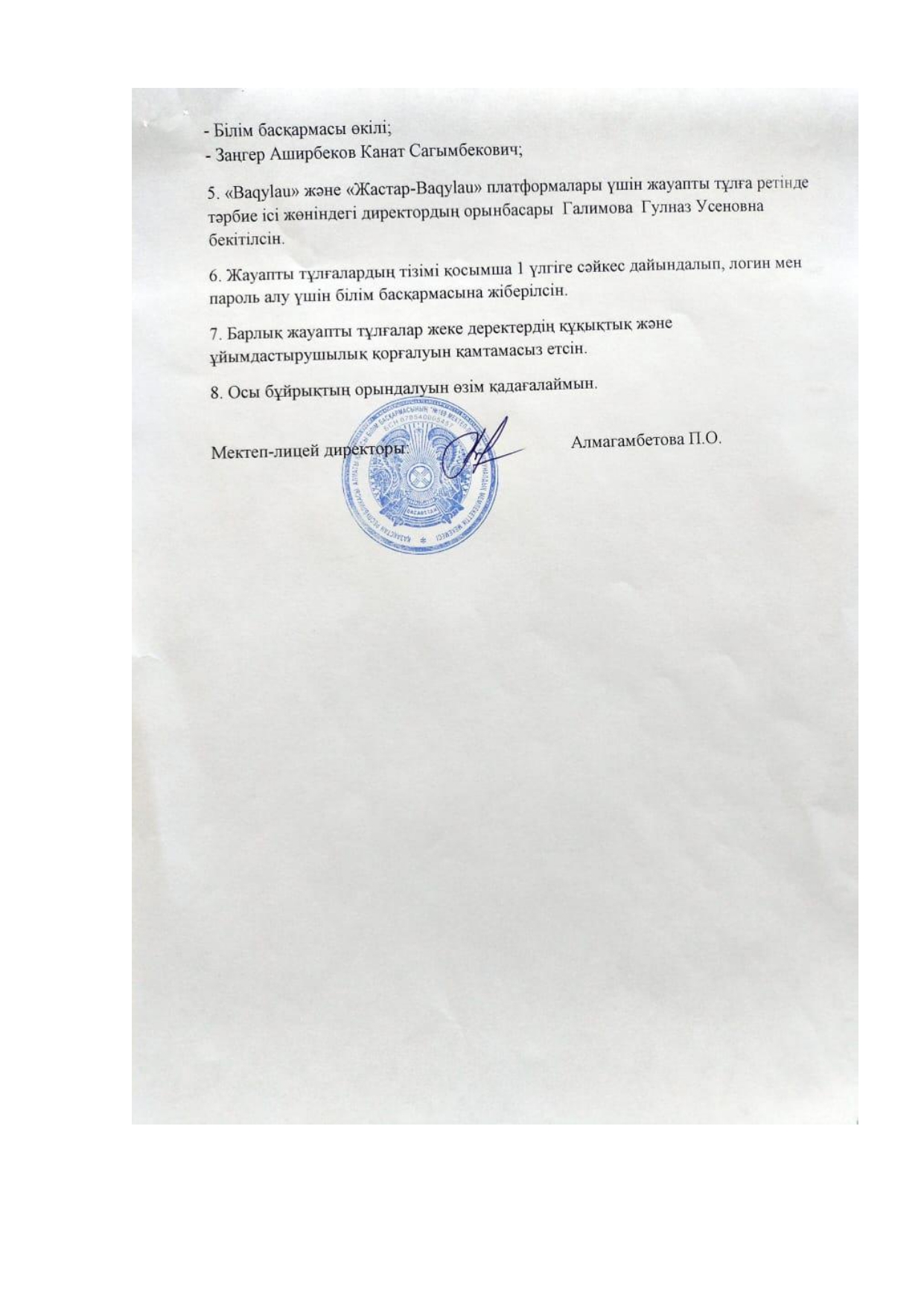 Бұйрық№250 Мектепішілік қамқоршылық кеңесін құру туралы
