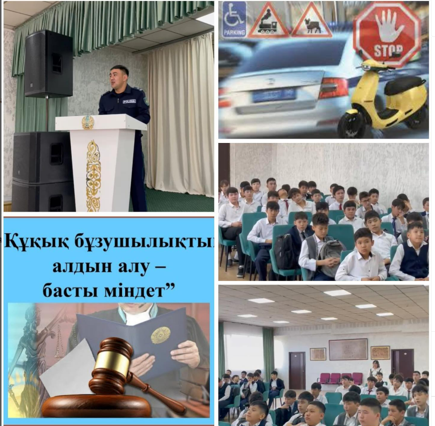 Бүгінгі күнгі қоғамның алдында тұрған басты міндеттердің бірі - балалар мен жасөспірімдер арасындағы құқық бұзушылықтың алдын-алу, кәмелетке толмағандар арасындағы қылмыстың өсуіне жол бермеу.Кешкі уақытта ата-аналар балаларын көшеге шығармау.Түнгі уақытта көшеде жүрмеу.Мапед,самокат айдамау керектігі жайында түсіндірме жұмыстары жүргізілді.Оқушылардың сабаққа кешікпеу,себепсіз сабақтан қалмау керектігі жайлы ескертілді.Алматы қалаасы Алатау ауданы полиция басқармасының кәмелеттік жасқа толиағандар істері жөніндегі учаскелік инспектор полиция капитаны Бегім Айбек Бейсенбекұлы “Құқық бұзушылықтың алдын -алу “ атты тақырыпта түсіндірме жұмыстарын жүргізді