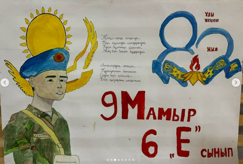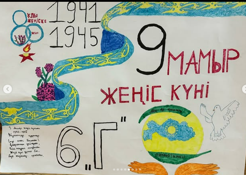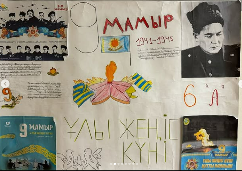 6-сынып оқушылары “Ұлы ерлікке мәңгілік тағзым” тақырыбында қабырға газеттерін жасап, өз шығармашылықтарын Жеңіс күніне арнады.