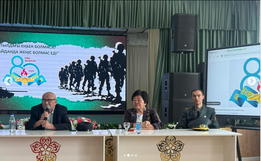 “Ұлы Жеңістің 80-жылдығына” орай 9-сынып оқушыларының қатысуымен еңбек ардагері Қармысбаев Серік атамен және ардагерлер бастауыш ұйымының төрайымы Шәкиева Бүбіхан апаймен жылы жүздесу өтті.