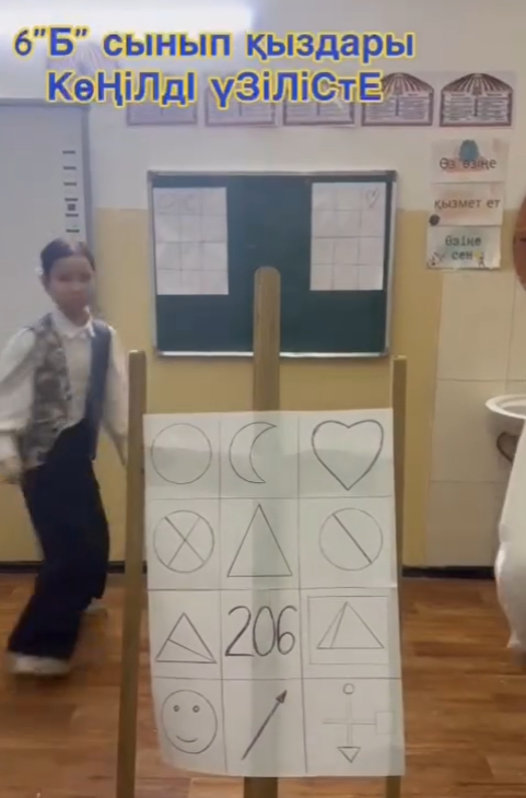 Мақсаты: үзіліс кезіндегі бос уақытын тиімді пайдалануға, әр түрлі ойындар арқылы дене қимыл қозғалысын дамыта отырып, өзара сыйластыққа, ынтымақтастыққа, достық қарым -қатынаста болуға тәрбиелеу.