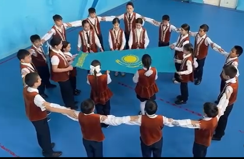 Школа 169 » Біз туралы » Мұғалімдер » №169 мектеп-лицейінің 5 “Ж” сынып оқушылары “Менің Қазақстаным” жобасы аясында көк Туға деген құрметтерін ерекше түрде көрсетті.