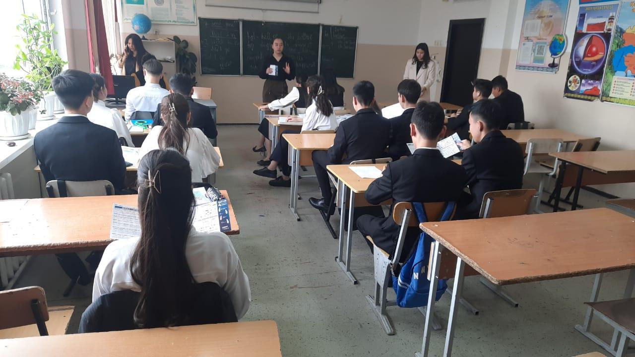 Школа 169 » Оқушыларға » Кәсіби бағдар беру » АЛТ Логистика және Көлік Академиясының мамандары 9-11-сыныптарға прлфориентациялық жұмыс жүргізді. Оқушыларға мамандықтарды айтып ғана қоймай, оқушыларды өз оқу орындарына оқуға түсуге шақырды. Оқуға түскен оқушыларға ноутбук сыйлыққа берілетінін айт