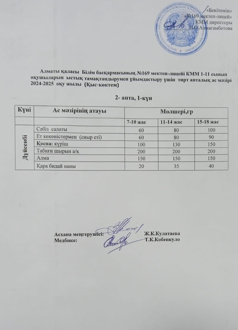 Ас мәзірі 10.01.2025ж