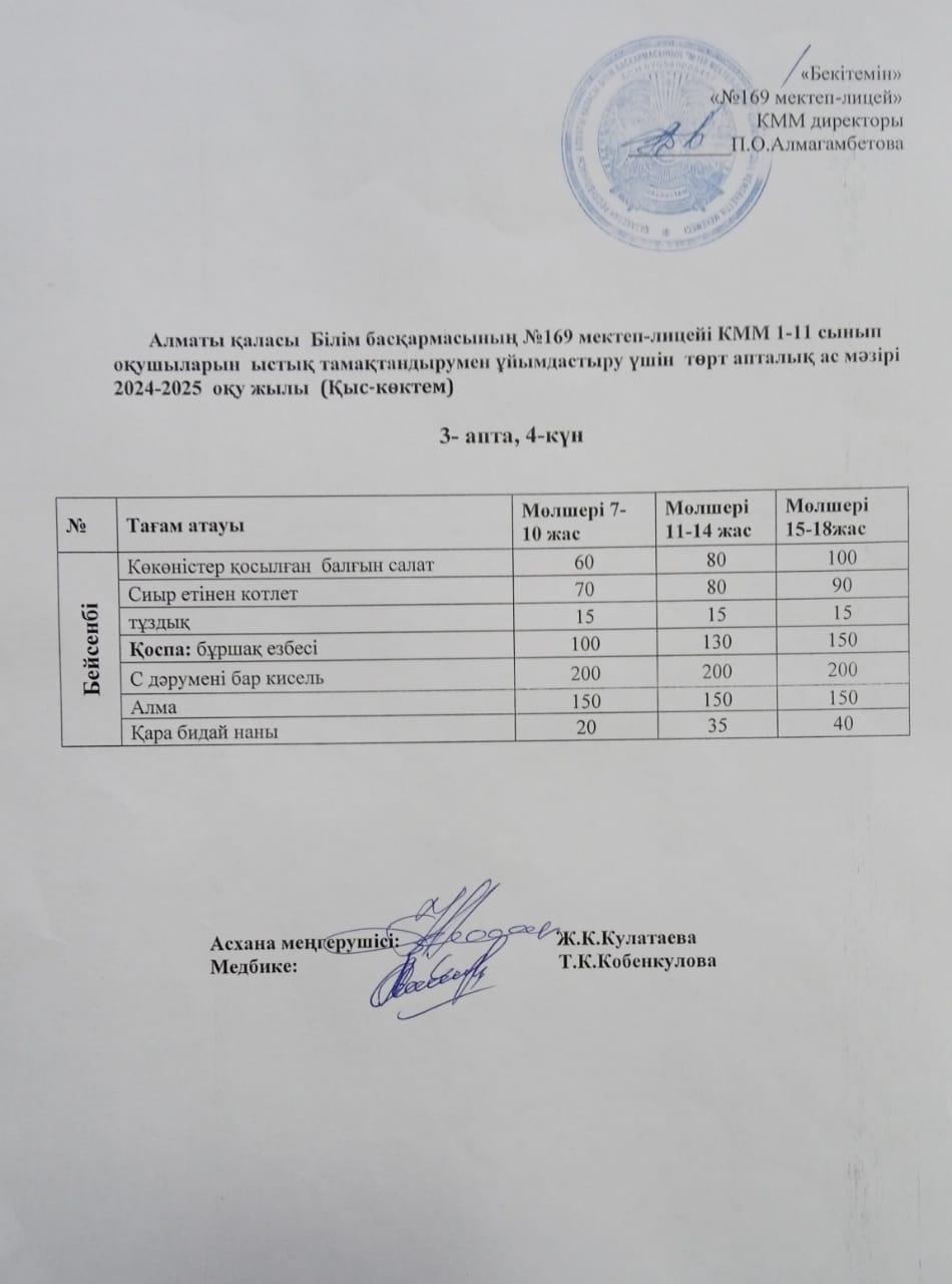 Ас мәзірі 15.01.2025ж