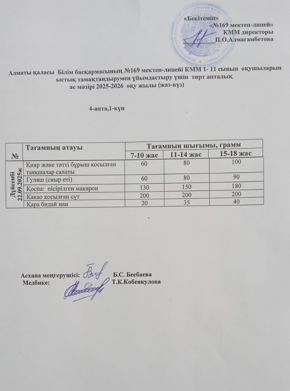 11.09.2025 Тамақтану сапасына мониторинг жүргізу актісі
