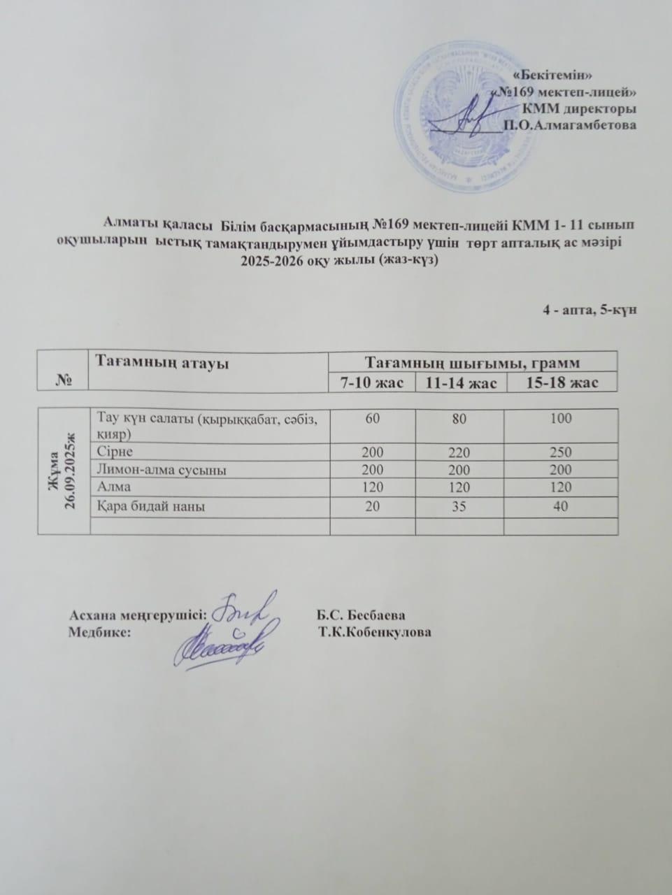 11.09.2025 Тамақтану сапасына мониторинг жүргізу актісі