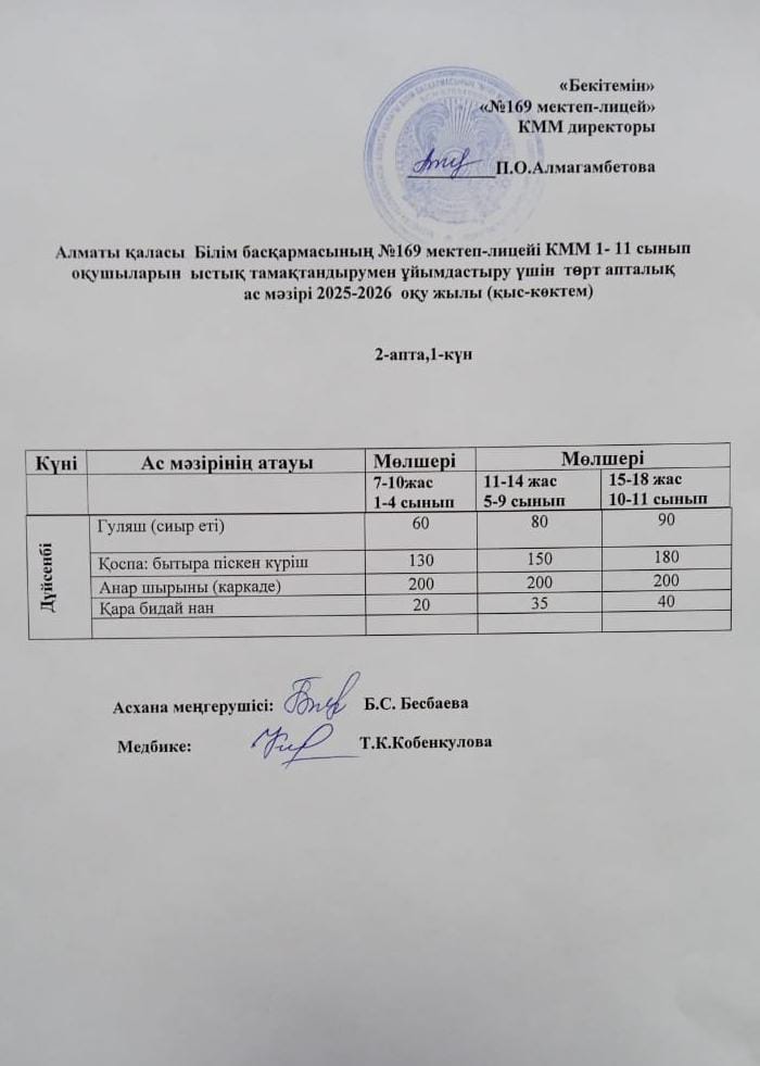 №169 мектеп-лицейі, кірістер мен шығыстар есебі. 2026ж