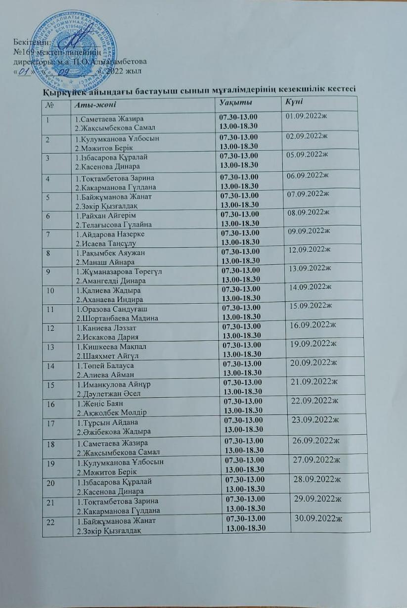01 сентябрь 2022 0 1 2 3 4 5 Бастауыш сынып мұғалімдерінің кезекшілік кестесі Осы беттің QR-коды:QR-код этой страницы: