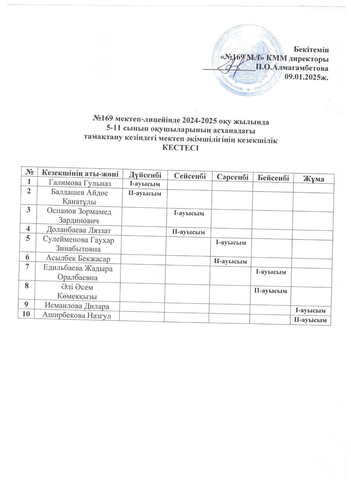 09 январь 2025 0 1 2 3 4 5 Асханаға мектеп әкімшілік кезекшілік кестесі Осы беттің QR-коды:QR-код этой страницы: