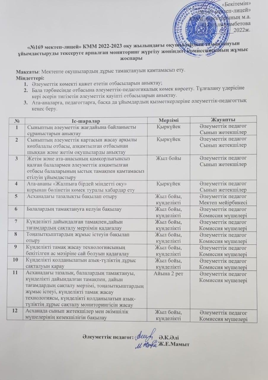 01 сентябрь 2022 0 1 2 3 4 5 Тамақтандырудың сапасына мониторинг жүргізу жоспаы Осы беттің QR-коды:QR-код этой страницы: