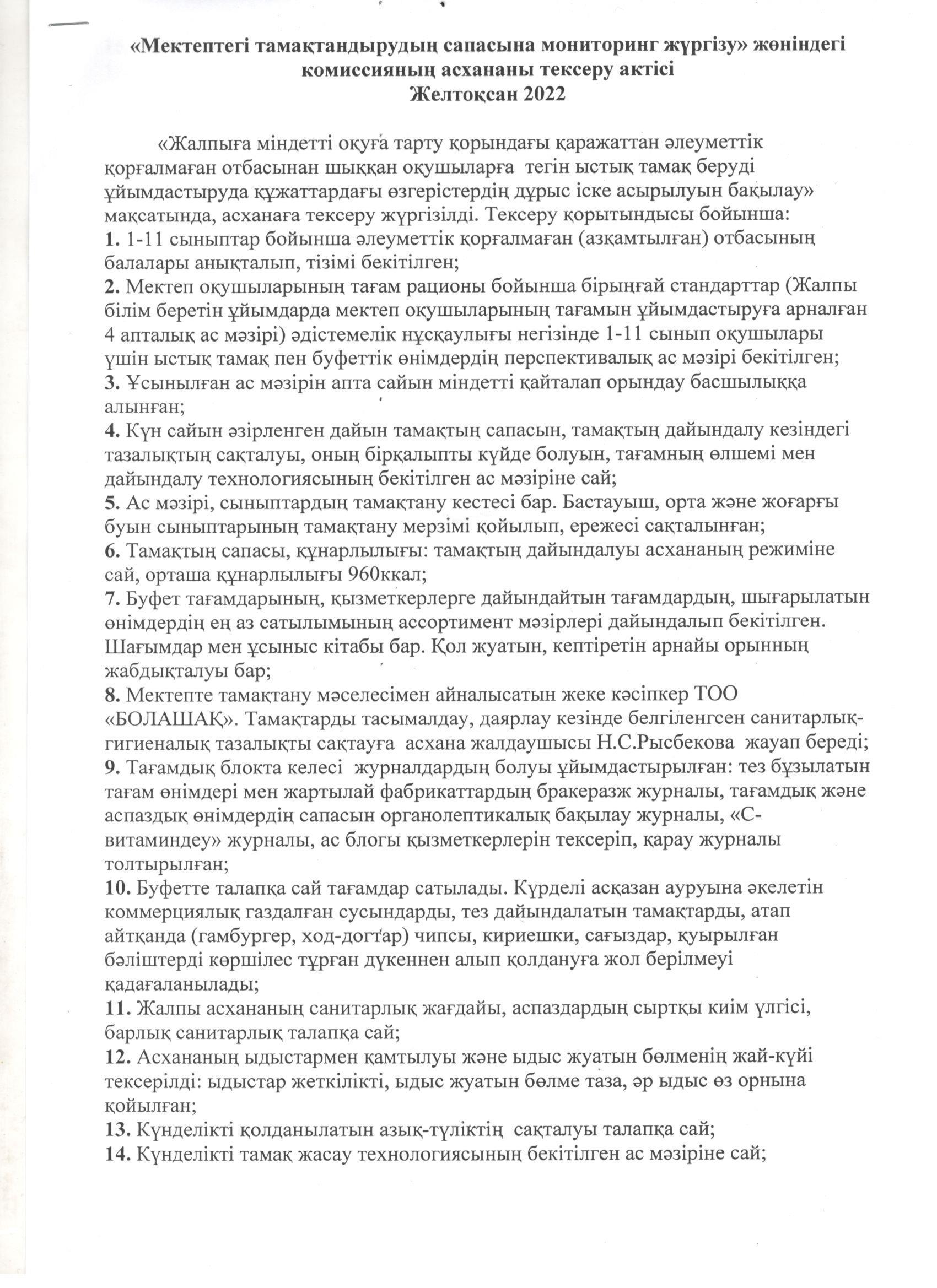 29 декабрь 2022 0 1 2 3 4 5 Тамақтану сапасына мониторинг жүргізу жөніндегі комиссия жұмысының қорытындысы Осы беттің QR-коды:QR-код этой страницы: